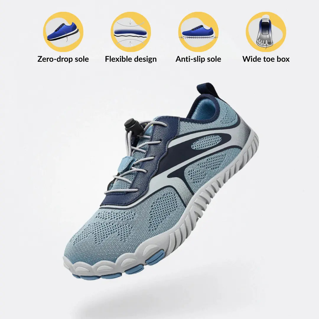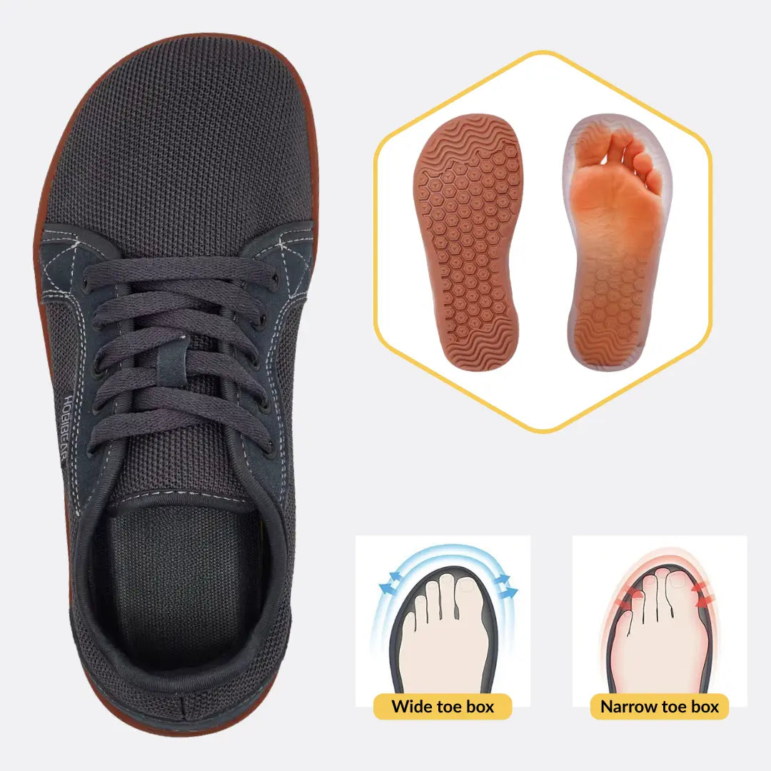 Instead of cushioning or restricting, barefoot shoes allow your feet to do their job naturally. The thin, flexible sole keeps you in close contact with the ground and encourages your foot muscles to work more actively. This can help improve stability, balance, and promote a more natural walking pattern.